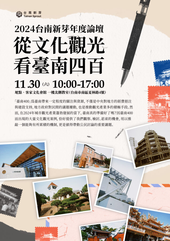 「臺南400」爲臺南帶來一定程度的關注與資源,不僅是中央對地方的經費挹注與建設支持,地方政府對民間的議題擾動,也是推動觀光產業多的積極手段。然而,在2024年城市觀光產業蓬勃發展的當下,臺南真的準備好了嗎?因臺南400而出現的大量文化觀光案例,恰好提供了我們觀察、檢討、思索的機會,用以推敲一個能夠有所累積的機制,更是值得帶動公民討論的重要議題。