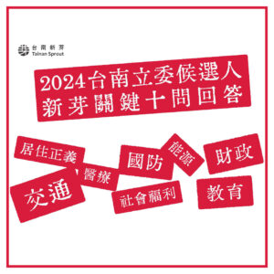 新芽講堂 作為一個公民,應該要擁有什麼樣的基本素養與能力呢?台南新芽利用自有之空間辦理活動,希望藉由講座、議題工作坊、讀書會等方式,持續地引入各種培力資源、嘗試撐出議題的交流討論空間,讓各種公民議題都可能談論,以提升台南在地的公民素養。同時這個場地空間,在空檔期間也開放租借給其他同樣在倡議公共議題的團體,讓議題推展得以有更多後援支持。 我要租借場地 關注地方選舉 2024年中華民國立法委員選舉(台南市) 2020年中華民國立法委員選舉(台南市) 2018年中華民國直轄市長及縣市長選舉(台南市) 2018年中華民國直轄市議員及縣市議員選舉(台南市) 2024年中華民國立法委員選舉(台南市) 2024台南立委候選人 關鍵十問回答 第10屆台南立委政見達成度暨主提案內容總評 台南立委網路高聲量之事件與政績整理 2020年中華民國立法委員選舉(台南市) 政策選邊站 2020立委選舉20問 2018年中華民國直轄市長及縣市長選舉(台南市) 2018台南市長候選人政見整理暨評論 台南市長給問嗎? 2018台南市長民進黨初選參選人政見整理 2018年中華民國直轄市議員及縣市議員選舉(台南市) 議員觀測報告