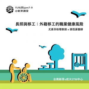 【講座資訊】 ▍講者:尤素芬助理教授、張恆豪醫師 ▍時間:2018/11/08 (四) 19:00-21:00 ▍地點:台南新芽講演廳(台南市中西區成功路 29 號 4 樓) ▍費用:歡迎現場自訂金額捐款 ▍主辦:台南新芽 &成大STM中心