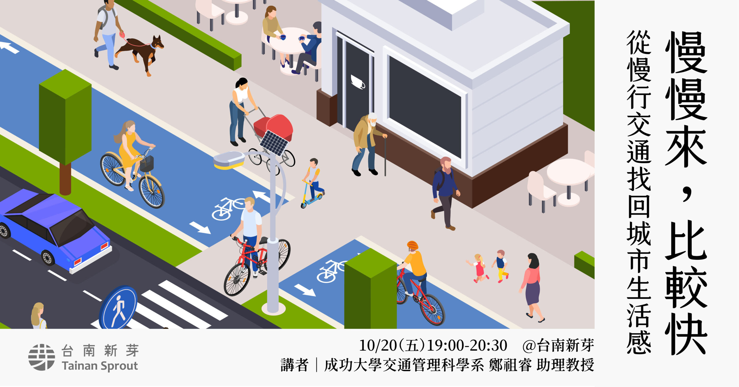 2023 年 11 月 26 日 活動側記|慢慢來,比較快:從慢行交通找回城市生活感 「交通本來的速度是什麼?」講座一開始,鄭祖睿老師拋出這樣的問題。其實,當前路很寬、車速快、車流多,這些我們習以為常的交通現況,都是在晚近的一世紀內被建構出來的。但是,我們是否想過,「交通」服務的到底是車還是人?道路空間的使用與建置,難道就只有快速通過這個唯一目的嗎? admin 0 comments