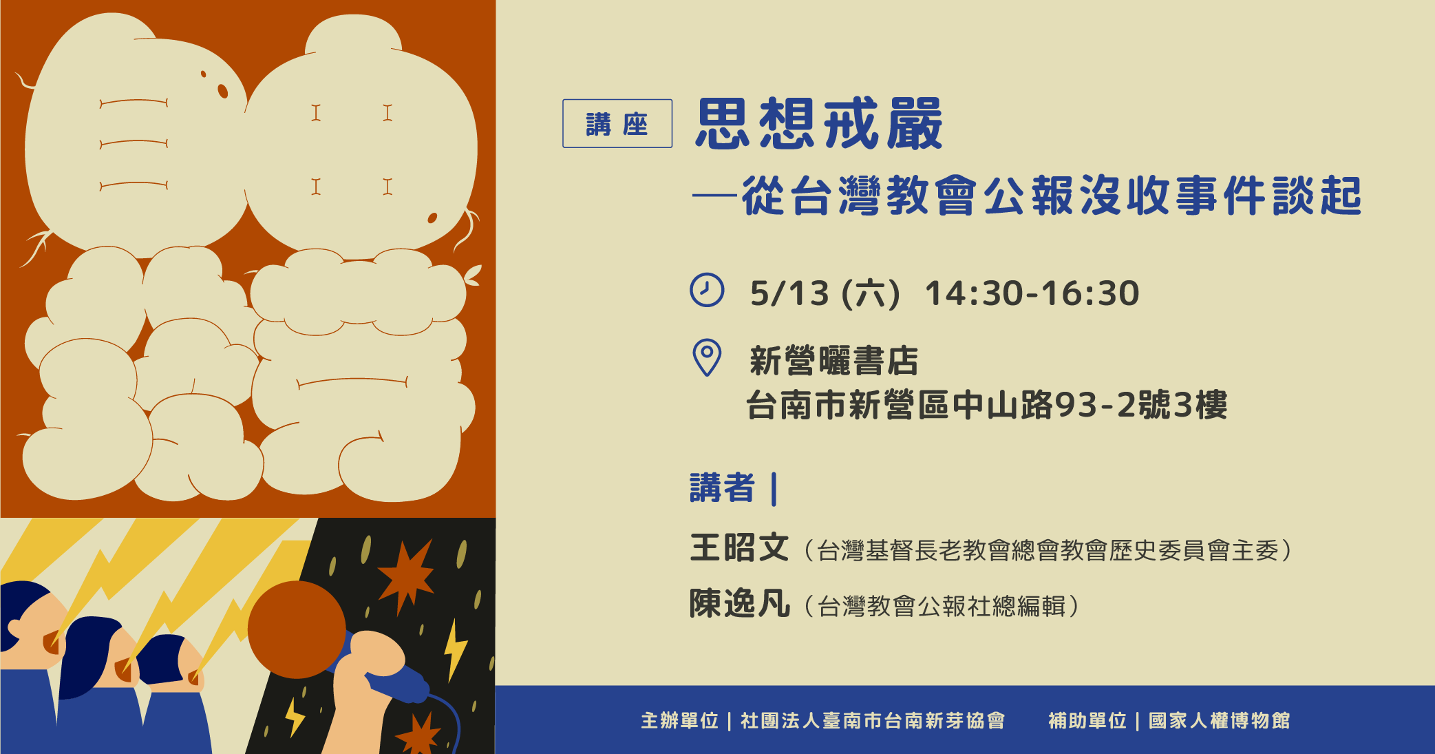 2023 年 4 月 21 日 自由發芽|思想戒嚴–從台灣教會公報沒收事件談起 1987年的台南,舉辦了全台灣第一場二二八平反運動遊行、發生了教會公報被沒收後的遊行行動,當時爭取的自由與人權,對如今的我們有何意義?三十多年以後,當時的台灣教會公報社仍挺立在台南這片土地上,在台灣民主化的進程中,作為媒體第四權的公報社還有哪些不為人知的努力?對自由與人權價值又抱持著什麼使命呢?自由發芽邀請你,一同來了解屬於台南的戒嚴史、自由奮鬥史,思考處在當前資訊紛雜的年代,我們又該如何看待對自由、人權的保障。 admin 0 comments