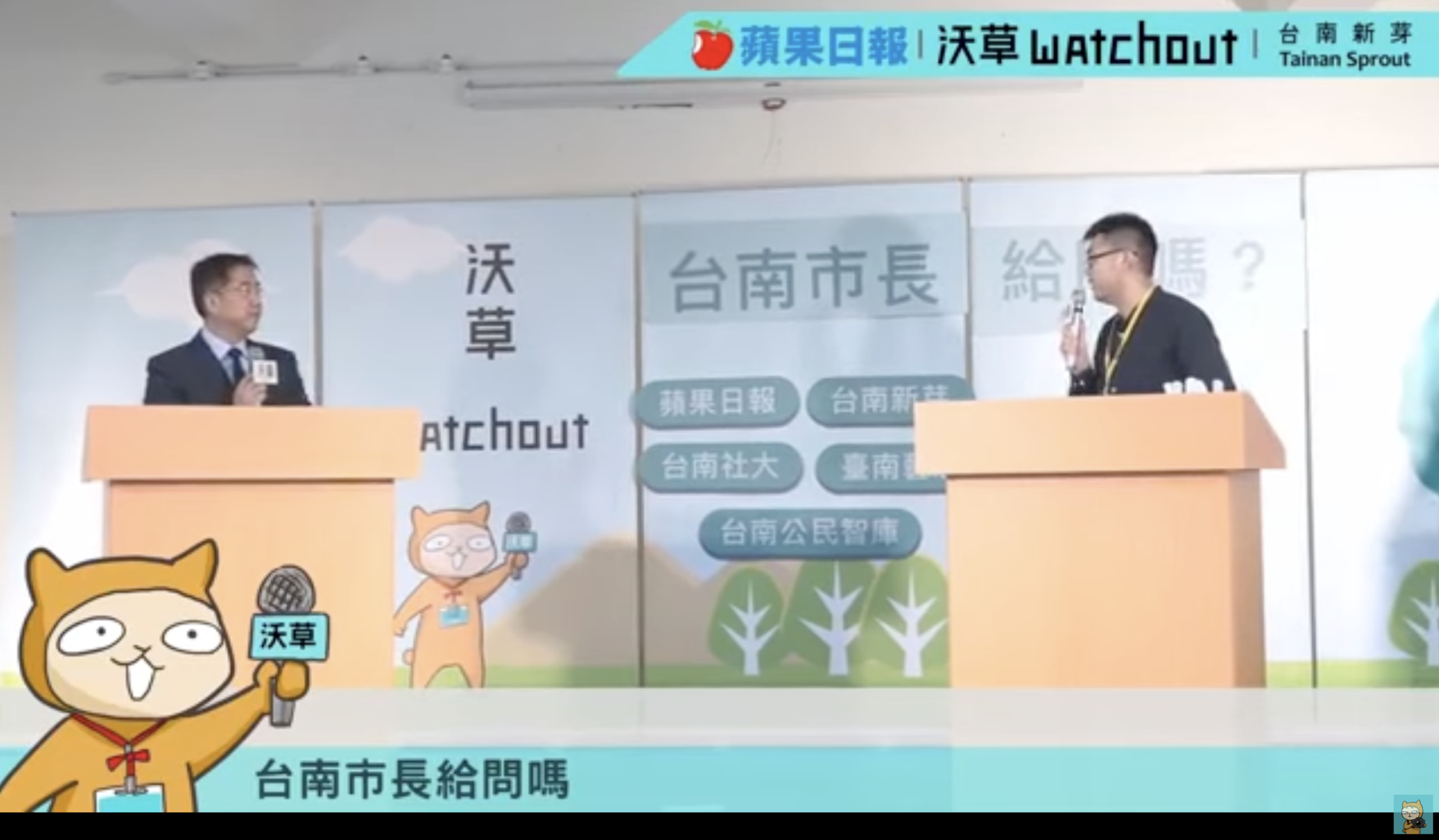 到了 2018 年,面對正式的市長選舉,新芽決定先是在3月份針對民進黨初選期間進行政見整理;而在接近選舉時,沃草針對六都市長推出給問企劃,因此再與新芽合作舉辦「台南市長候選人給問嗎?」。當時總共六位候選人,除了無黨籍參選人林義豐與陳永和則答應出席後臨時缺席,包含許忠信、蘇煥智、高思博與黃偉哲均到場接受提問。